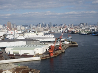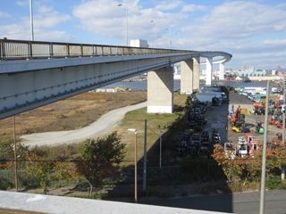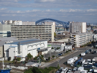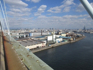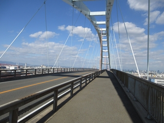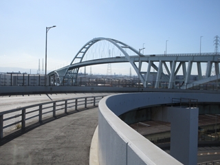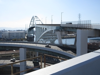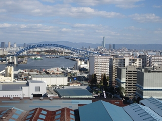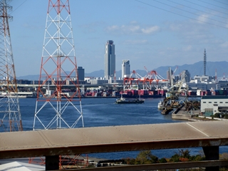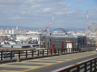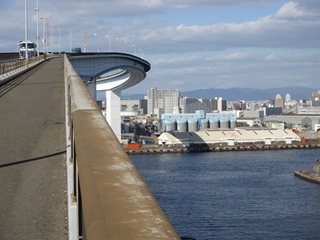 以前に通った六甲大橋とか神戸空港連絡橋でも大阪のビル街に感激したが、現場で間近に見る大阪の景色はさらに良い。