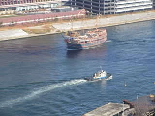 前半の見どころは天保山大観覧車だ。112mと日本最大級というのが謳い文句。3回目にして初めて乗った。下見の時は全く、関心なし、2回目のOBの時は参加者がぜひ乗りたいというので了解し、私は下で待ってカメラマンに徹した。そして、彼らの感想は良かったということだった。とすれば、3回目は乗って確認しかない。